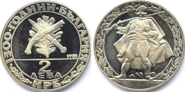2 ЛЕВА 1981 НРБ / 1300 ГОДИНИ БЪЛГАРИЯ / БЪЛГАРСКИ РЕВОЛЮЦИОННИИ ЦЕНТРАЛНИ КОМИТЕТ