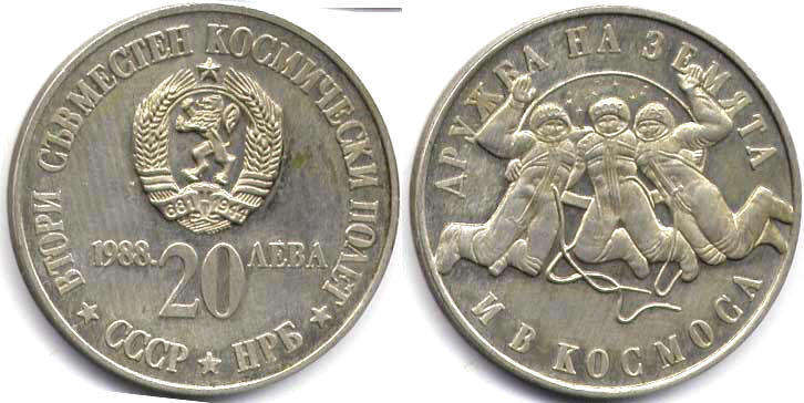 1988 20 ЛЕВА / СССР НРБ / ВТОРИ СЪВМЕСТЕН КОСМИЧЕСЖИ ПОЛЕТ
