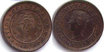 CEYLON QUARTER CENT / 1898