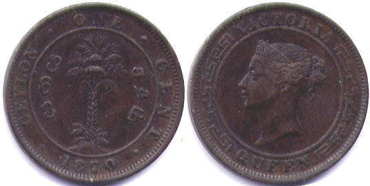 CEYLON ONE CENT / 1870