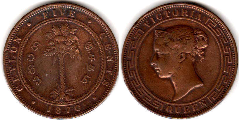CEYLON FIVE CENTS / 1870