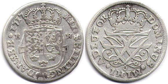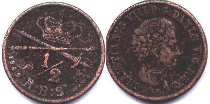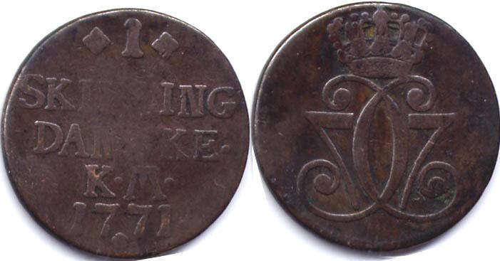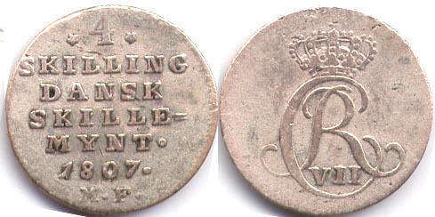 Датская Крона=4 марки; Марка=16 скиллингов (до 1813)