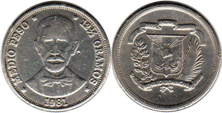 MEDIO PESO REPUBLICA DOMINICANA 1986 / Государственный герб