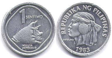 1 SENTIMO / VOLUTA IMPERIALIS / Морская раковина (волюта импералис)