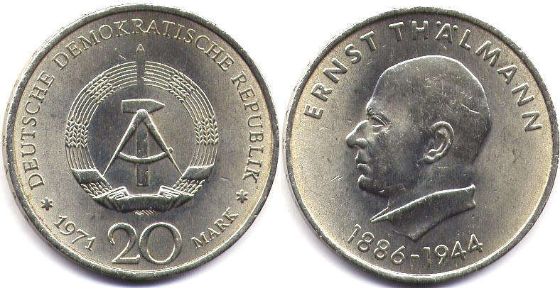 1971 20 MARK / DEUTSCHE DEMOKRATISCHE REPUBLIK / Герб