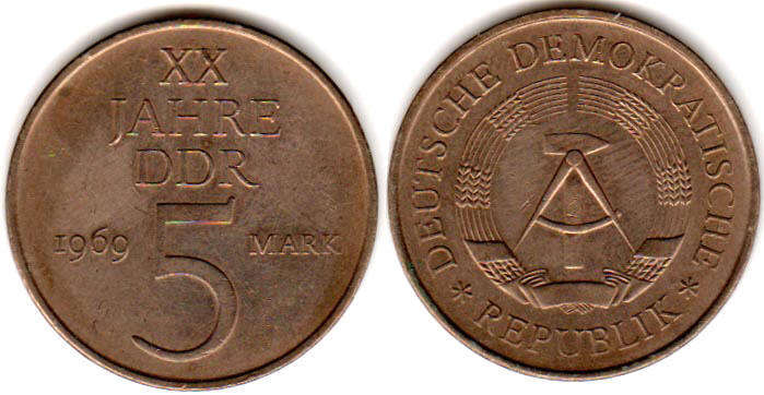 1969 5 MARK / XX JAHRE DDR / Номинал