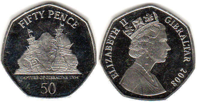 FIFTY PENCE / CUPTURE OF GIBRALTAR / 50