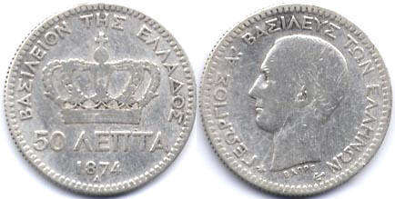 50 ΛЕПТА 1874 / ΒΑΣΙΛΕΙΟΝ ΤΗΣ ΕΛΛΑΔΟΣ