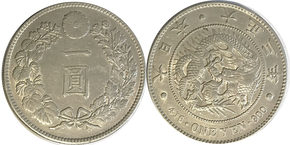ВЕЛИКАЯ ЯПОНИЯ / 1 ЙЕНА МЭЙДЗИ 3 ГОД / дракон внутри бисерного круга