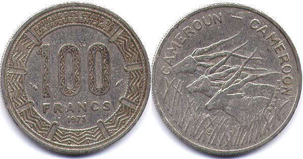 100 FRANCS 1975 / BANQUE DES ETATSDE AFRIQUE CENTRALE / Номинал в круге из орнамента