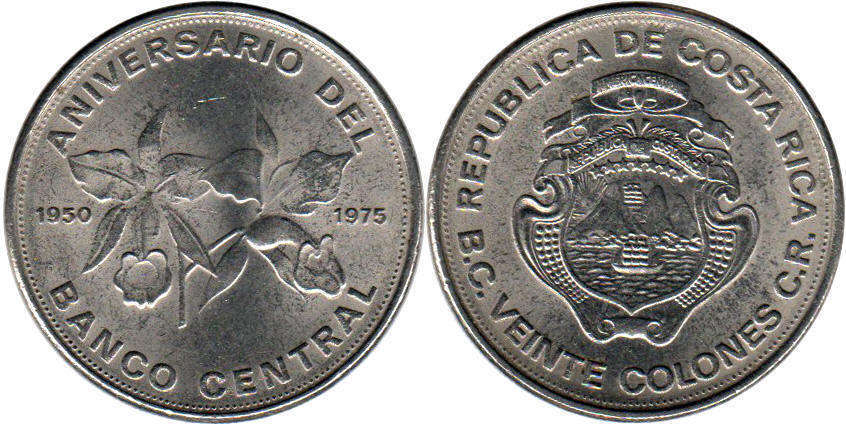 20 COLONES / B.C.C.R / Номинал над колосьями