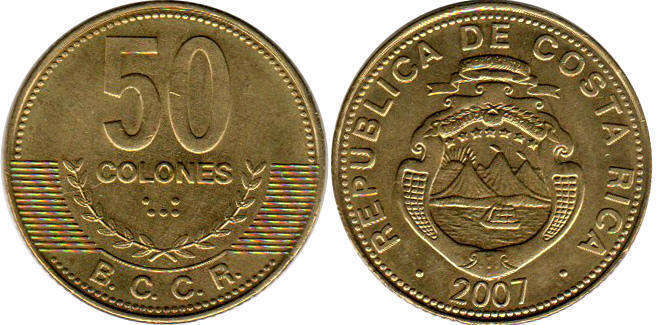 50 COLONES / B.C.C.R / Номинал над колосьями