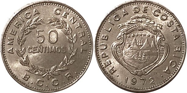 50 CENTIMOS / AMERICA CENTRAL / B.C.C.R / Номинал внутри венка