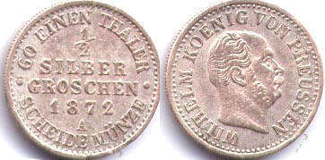 1/2 SILBER GROSCHEN 1872 / 60 EINEN THALER SCHEIDE MUNZE