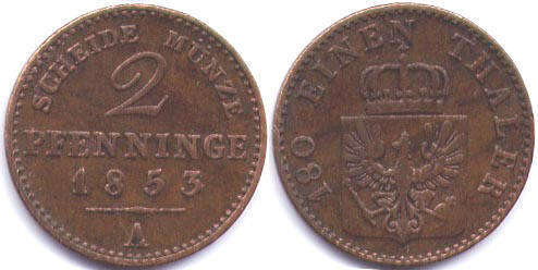 2 PFENNINGE 1853 / SCHEIDE MUNZE