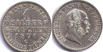 1 SILBER GROSCHEN 1871 / 30 EINEN THALER SCHEIDE MUNZE