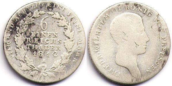 6 EINEN REICHS THALER 1812 / VIERZEHN EINE FEINE MARK