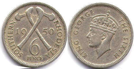 6 PENCE / SOUTHERN RHODESIA / 1950 / Перекрещенные топорики