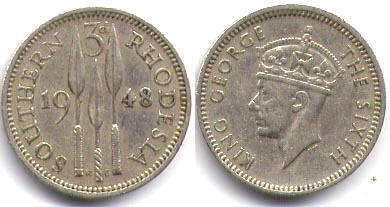 6 PENCE / SOUTHERN RHODESIA / 1947 / Перекрещенные топорики