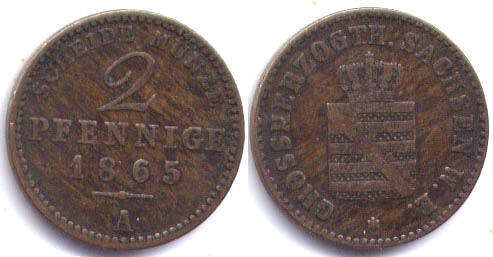 2 PFENNIGE 1865 / SCHEIDE MUNZE