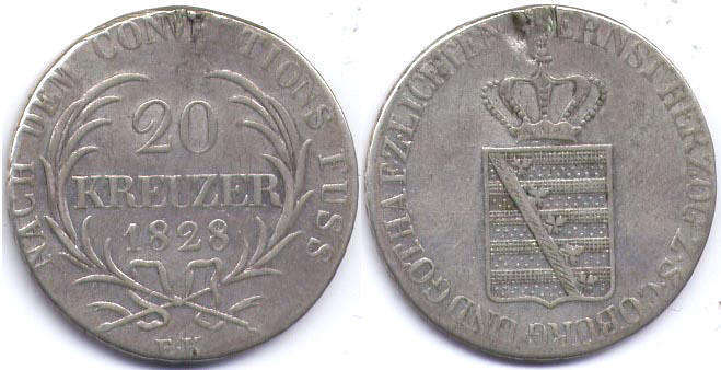 20 KREUZER 1828 / NACH DEM CONVENTIONS FUSS