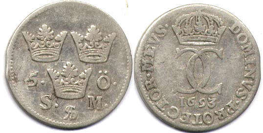 Риксдалер=4 марки; Марка=8 эре (1604-1664)