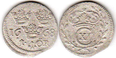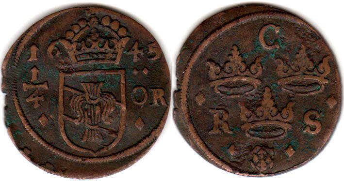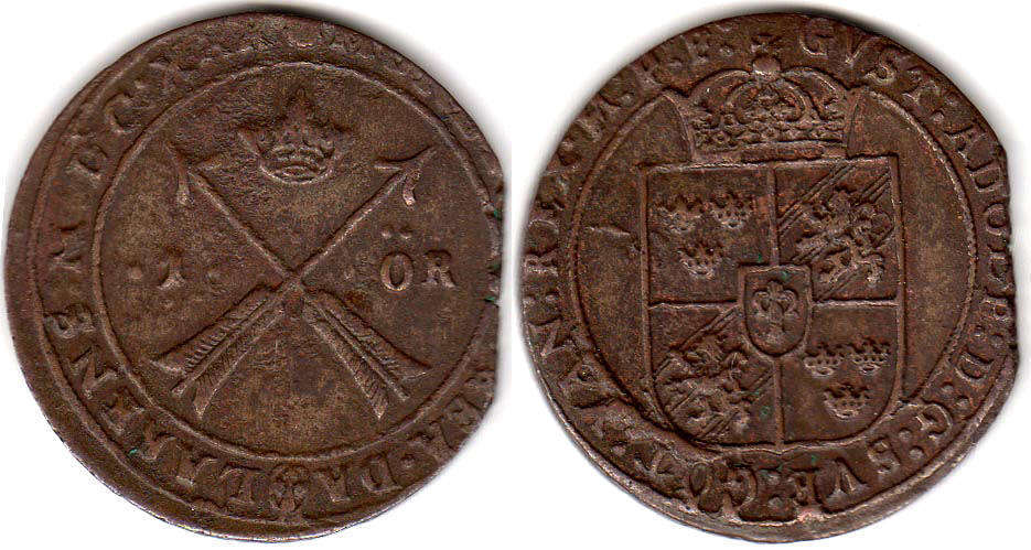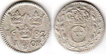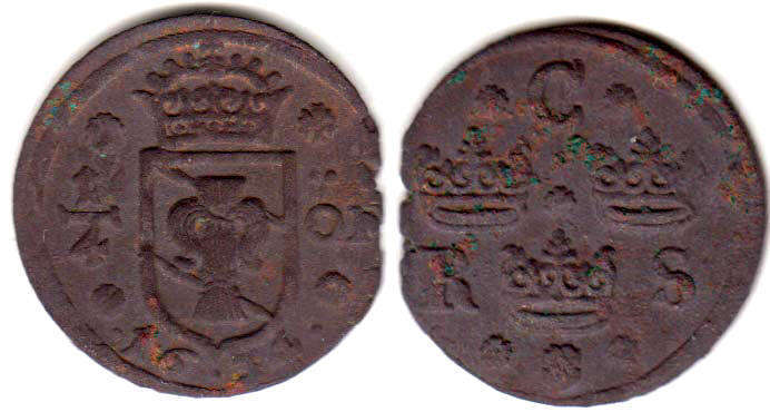 MONETACVRREA DALARENS M DCLXXX / 1 OR