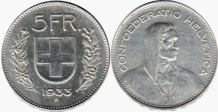 5 FR. / CONFOEDERATIO HELVETICA / Надписи
