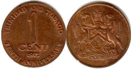 TRINIDAD AND TOBAGO / TENTH ANNIVERSARY / 1 CENT 1972