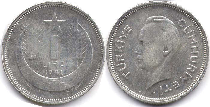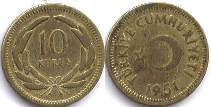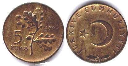 Турецкая Лира=100 куруш; Куруш=40 пар (1935-2004)