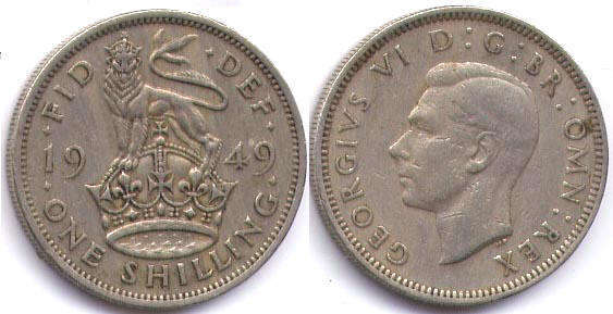 ONE SHILLING / FID DEF / 1949 / Английский герб