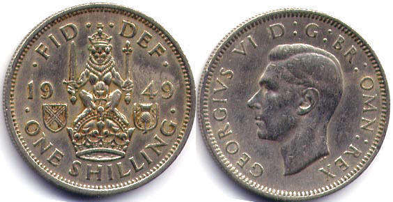 ONE SHILLING / FID DEF / 1949 / Шотландский герб